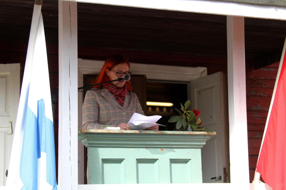 Tämän jälkeen olikin jo juhlapuhujan vuoro, ja tällä kertaa juhlapuhujana toimi Palvelualojen ammattiliitto PAM ry:n puheenjohtaja Annika Rönni-Sällinen/SDP.
